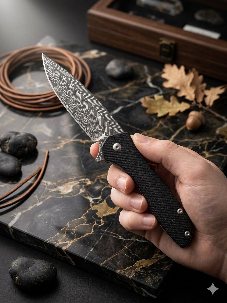 Bu özel tasarım çakı, zarafet ile gücü bir araya getiren benzersiz bir koleksiyon parçasıdır. Altın tonlu gövdesi üzerindeki ince işçilikle işlenmiş motifler, klasik sanatın modern yorumunu sunarken; ergonomik yapısı sayesinde elde mükemmel bir tutuş sağlar.